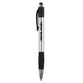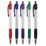 Retractable, Ball Point, Metallic, Colored Clip, Plastic Clip, Grip Accent, Chrome Ferrule, Chrome Plunger, Medium Point, Black Ink. 5 5/8″ L x 3/8″ Diameter