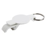 Round-shaped bottle opener design features a stainless steel insert for tough-to-open bottle caps and a durable lever edge to easily open pop-top cans. 2 1/2″ W x 1 1/4″ H x 11/16″ D