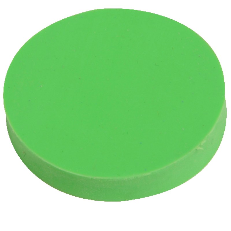 Round latex-free rubber eraser. Complies with Prop 65. 1 1/2″ Diameter x 1/4″ D