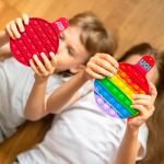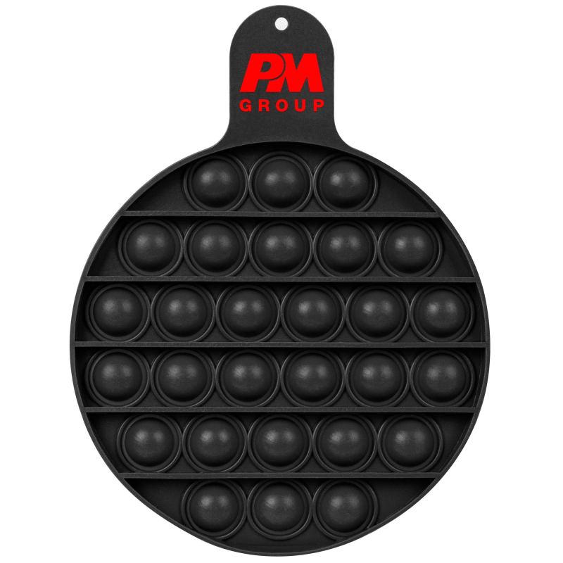 Made of high-grade silicone. Features 28 popper bubbles. Try them. They’re irresistible! Ideal for calming anxiety. Comes with a metal carabiner and instructions for a fun game! 5″ W x 6 1/2″ L