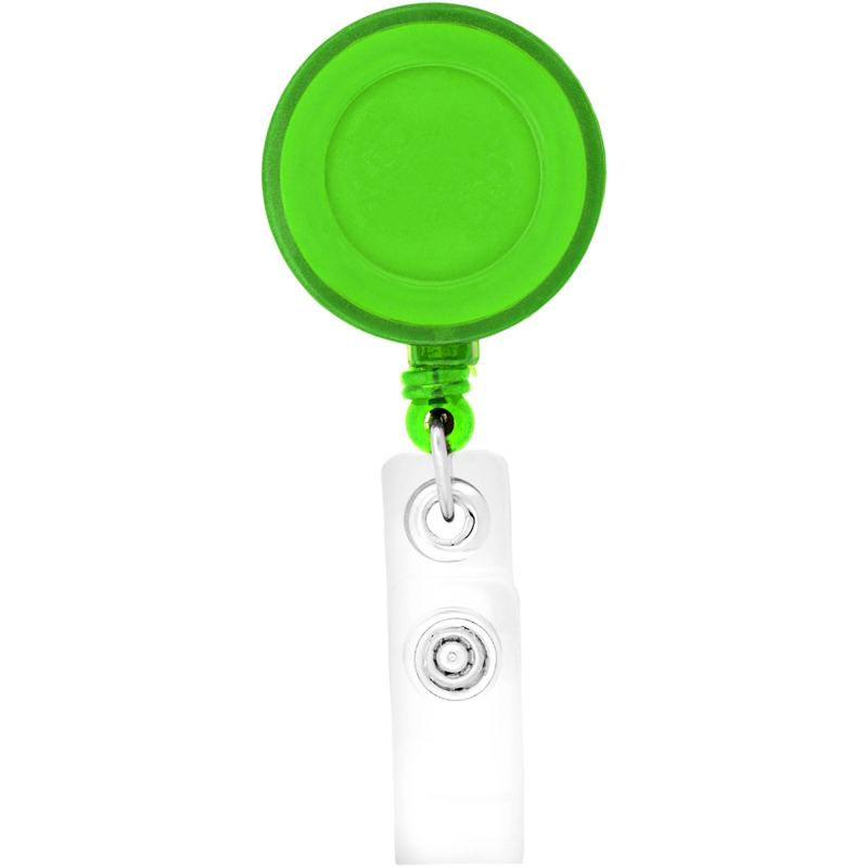 This is a 30″ retractable trade show/office badge reel with a PVC strap, ABS case and a stainless steel pocket clip on the back. Imprint directly on the badge holder or have a full-color digital insert. Epoxy Dome is not included in 24hr service. Epoxy Dome will require 3-day production. 3rd Option: (Optional – DDP): 11/16″ Diam. Complies with Prop 65. 1 1/4″ Diameter