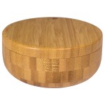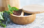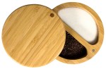 Salt & Pepper… Cinnamon & Sugar… So many of our favorite flavors come in twos! Our Salt Keeper Duet does double duty with two compartments for herbs, spices, seasonings and more. Crafted from organically grown bamboo, this box sports a magnetic swivel lid for easy one-handed opening and closing. Holds 4 Oz. of salt or pepper in each of its sections (8 Oz. total). Complies with Prop 65. 5″ Diameter x 2 1/4″ H