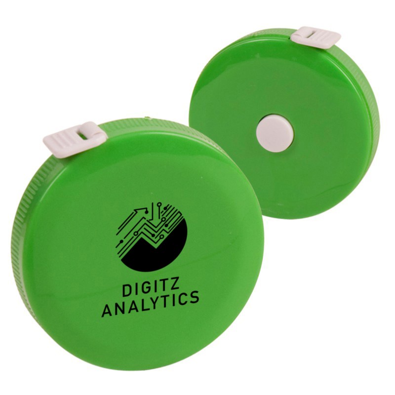 Here’s a great giveaway that will be used over and over again! This round tape measure can measure up to 5FT (60 inches) for those smaller projects and features a push button to retract the tape smoothly back into the housing, a PVC ruler and an ABS plastic case, where you can add an imprinted brand name, logo, or message. It also features inches and centimeter measurements. An essential tool for professionals, DIY enthusiasts, and anyone in need of precise measurements in a portable format. 2″ L x 0.5″ D