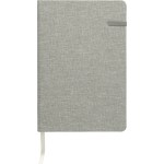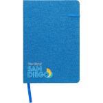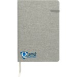 Elevate your note-taking experience with our eco-friendly Recycled PET cover notebook, featuring 80 ruled pages certified by FSC®. The heathered fabric cover adds a touch of sophistication, while the elastic pen loop ensures you always have a writing utensil on hand. Rest easy knowing that our supplier is FSC® certified with the code SCS-COC-007184, guaranteeing sustainable and responsible practices. Make a conscious choice with our premium notebook that combines style, functionality, and environmental awareness. Complies with FSC, Prop 65. 5″ L x 7″ H