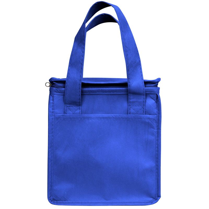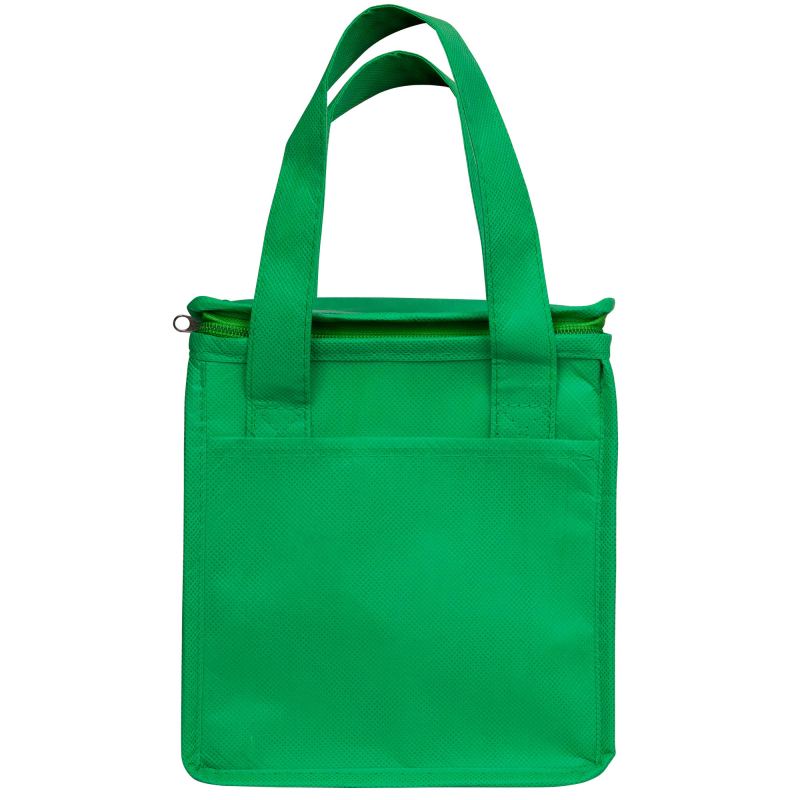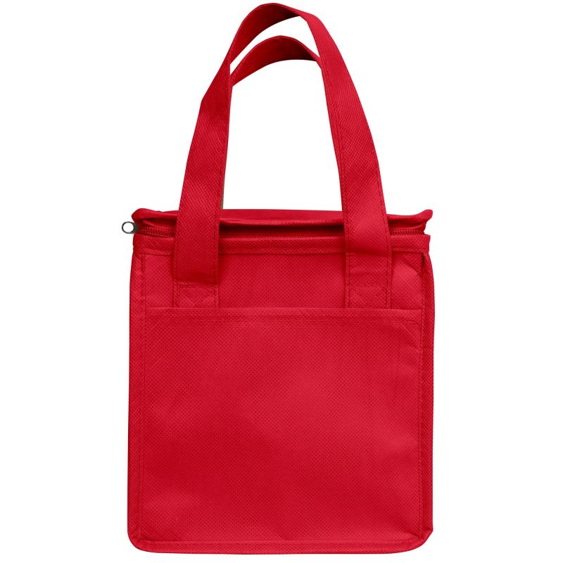 Great for carrying small snacks, hot or cold wherever you go. Features: Made of recycled plastic bottles! (RPET). Interior is lined with an insulated barrier to keep your foods hot or cold. Includes a pocket on the front. Slide a business card or name tag into the convenient clear sleeve. This bag replaces our previous bag, sans the laminated outer layer. 7 3/4″ W x 8 1/2″ H x 6″ D