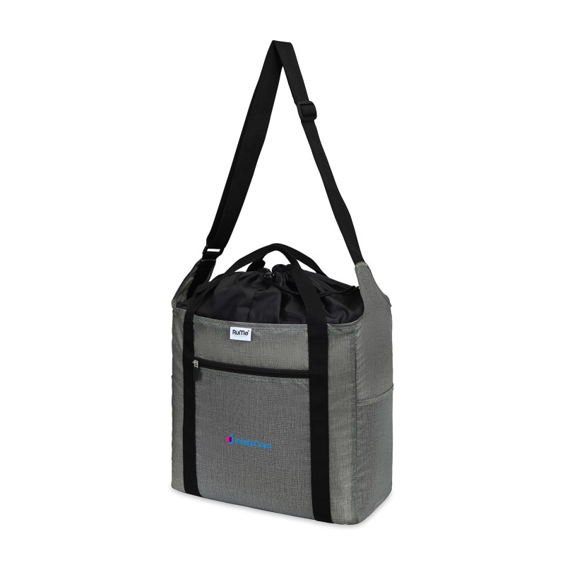 The RuMe(R) Recycled Cinch Tote offers multiple carry options on a classic tote, made with recycled materials! Complies with CPSIA, Prop 65. 6.5″ W x 13.75″ H x 15″ L