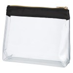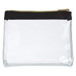 Made Of Combo: Clear PVC With Satin Trim. Zippered Compartment. Trendy Gold Zipper. Spot Clean/Air Dry. Complies with Prop 65. 9″ W x 6.5″ H