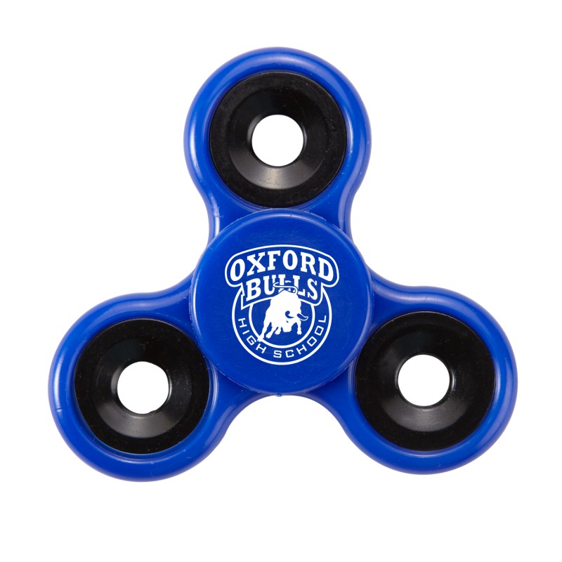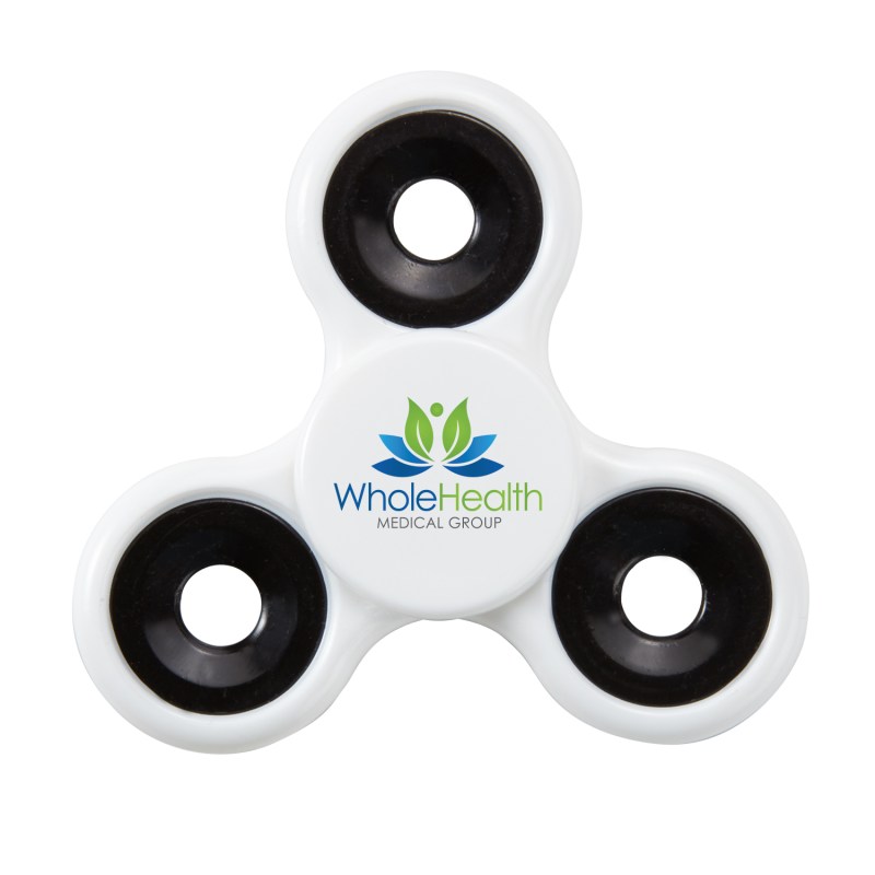 Larger imprint area on center cap. Outer weights appear to spin around center cap. EDC (Everyday Carry) product. Stress relief that fits in your pocket. Excellent for children and adults who need to keep their hands distracted. Long 2 minute spin time. ABS plastic body & carbon steel bearings. Bearings & weights are molded into plastic, so they won’t easily come out. CPSIA Compliant. Complies with CPSIA, Prop 65. 3 1/4″ Diameter x 1/2″ D