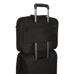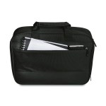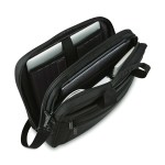 Fully featured with plenty of organization, option to store multiple laptops, tech, and accessories. Dedicated, padded compartment, sized to fit most laptops up to 17″. Exterior organization includes 1 quick access pocket for smaller items, 1 larger pocket with organization to store essentials, a lined phone pocket, 2 pen sleeves, and business card sleeves. SmartSleeve(TM) fits over most upright handles for hassle-free combination travel. Complies with CPSIA, Prop 65. 4.5″ W x 12.5″ H x 17.5″ L