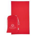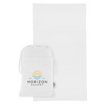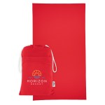 rPET Towel With Matching rPET Drawstring Pouch Made From Post Consumer Recycled Materials Recycled Polyester (rPET) is Obtained By Melting Down Existing Plastic Bottles And Other Material Sources To Create New Polyester Fiber. 35″ W x 63″ H