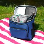 Keep Your Favorite Beverages Cold With This 12 Can Cooler! This cooler is perfect for day trips and more. It will hold up to 12 cans and is great for keeping your beverages or food cold when on the go. Features top grab handle, adjustable strap with dura-flex buckles and mesh pocket inside lid . Two front pockets with YKK zippers and two mesh side pockets for extra carrying room. Also includes an attached bottle opener and trolley strap. Complies with Prop 65. 11.5″ W x 11.5″ H x 6.25″ D