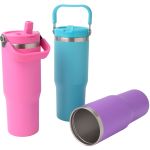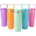 Our Durable 30 oz. Tumbler Boasts a Swing Handle, Double-Wall Insulation, and a Bright Powder-Coated Finish. Ideal for Long Trips and Outdoor Adventures, It is Customizable With a Laser-Engraved Imprint. This tumbler features a convenient swing handle for easy carrying and portability. Crafted from durable stainless steel. Its powder coated finish adds a sleek touch while protecting against wear and tear. Laser Engraved custom imprint . Complies with Prop 65. 3.46″ D x 9.65″ H