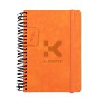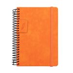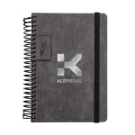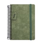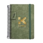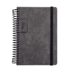 The Savile Spiral Journal with Pen Loop features a sleek design with qty. 80, 70-gsm inner sheets, ideal for everyday note-taking and organization. It includes an elastic band closure and pen loop for added convenience, making it a practical and stylish choice for professional or personal use. Product Size: 5.75″ W x 8.25″H. 5.75″ W x 8.25″ H
