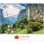 Your Customers Will Enjoy the Scenic Europe Spiral Wall Calendar Every Day of the Year! 13 month wall calendar from December to December with large blocks for writing notes and 3 year at-a-glance inside cover. Made in the USA calendar showcases beautiful panoramic full color photos of scenes across Europe. Features spiral binding. High quality gloss paper with UV coated cover; Eco-friendly and Recyclable. Made from 10% post-consumer waste. Complies with Prop 65. 11″ W x 9.5″ H