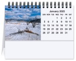 This tent calendar features 12 calendar sheets made with 80 Lb. gloss text paper that include front and back month-at-a-glance with room to write. Calendar is printed in back only and the back of the last calendar sheet has a year-at-a-glance calendar for the current and next year. The pre-scored back folds into an easel and is made from white cover stock that can be printed on 2 sides. Easel back has “Emergency Phone Numbers” and “Future Planning” areas. Bound with black Wire-O. Measures 5 13/16″x 6 ¼” flat for mailing. 5 13/16″ L x 4 1/2″ W