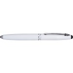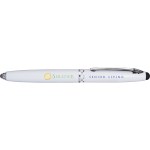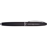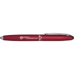 Ultramodern multifunction executive pen with handy stylus. Matte metallic finish contrast boldly with shining silver details. Press LED end to activate flashlight. Complies with Prop 65.