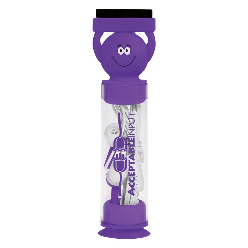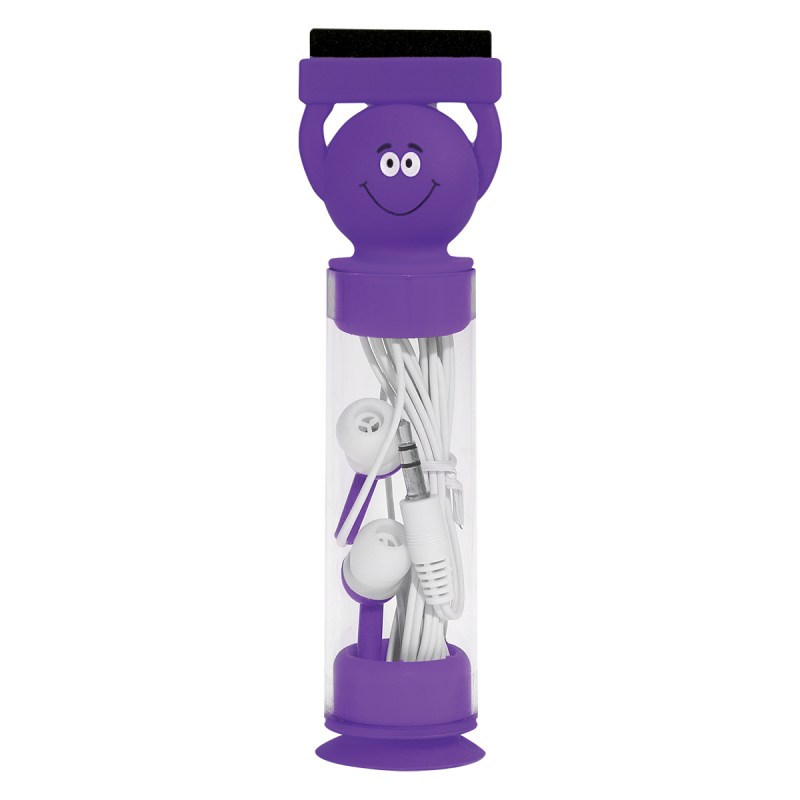 Protective Plastic Travel Case. Silicone Cap With Built-In Screen Cleaner. Suctions To Back Of Phone For Use As Stand. Works With Most Audio Devices. Complies with Prop 65. 5.5″ W x 1.5″ H