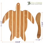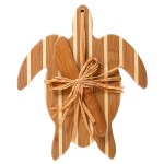 Make a splash with the Totally Bamboo Sea Turtle Charcuterie Board with Spreader Knife Gift Set! Shaped like a sea turtle and masterfully crafted from bamboo, this board offers a unique combination of fun and elegance. This charcuterie board set is a great way to serve guests crackers, cheeses, meats and other appetizers. The included bamboo spreading knife is ideal for spreading soft cheeses, dips and sauces onto crackers or bread. 11 1/2″ L x 8 5/8″ W x 1/2″ H