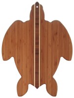 The Sea Turtle cutting board makes an excellent gift for any type of vacation or tropical setting. The light stripes down the center are the natural color of the bamboo. The bamboo is steamed and the sugars caramelize producing a natural dying process that will last the lifetime of the board. With a laser engraved logo your brand is guaranteed to have a place in the kitchen for years to come. Complies with Prop 65. 11″ W x 14 7/8″ L x 5/8″ Thick