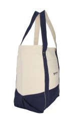 Pack up for a lazy day at the beach with these Seaside Zippered Cotton Totes. Each of these study cotton canvas bags features a front slash pocket, a large main compartment with a zippered closure, an interior zippered pocket for storing accessories, reinforced web handles for durability and maximum load tolerance and 23” shoulder straps. Antique brass rivets complete the nautical look of this fun, functional and attractive tote. Invest today! Complies with CPSIA, Prop 65. 9″ W x 16.5″ H x 21″ L