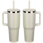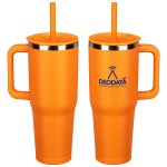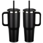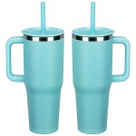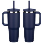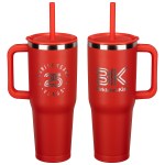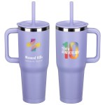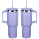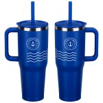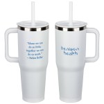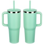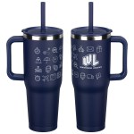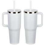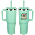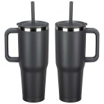 The SENSO® Summit 40 oz Vacuum Insulated Stainless Steel Travel Mug is crafted from 18/8 stainless steel, it features a nice powder-coated matte finish, color-matched plastic handle and straw, a press-in straw lid to prevent spills and a copper-lined and double-wall insulation for temperature retention. This travel mug keeps your drinks hot for up to 6 hours or cold for up to 16 hours and it is compatible with car and truck cup holders. The SENSO® Summit is also BPA-free and FDA-certified. Complies with FDA, Prop 65. 10.125″ H x 3.875″ Diameter