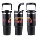 Experience unparalleled convenience with our Travel Insulated Tumbler. Made from premium 18/8 stainless steel, it keeps beverages cold for up to 20 hours. The copper-lined double-wall insulation ensures optimal temperature retention on your adventures. Designed with a stylish color matched handle for easy portability and a color matched polypropylene lid offering two convenient drinking options – a flip-top spout, with removable straw, and a flip-top opening for easy sipping. Elevate your hydration game with our BPA free and FDA certified Travel Insulated Tumbler. Complies with FDA, Prop 65. 9.5″ H x 3.5″ Diameter