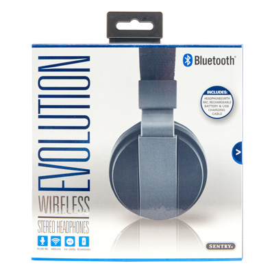Sentry Evolution, rechargeable headphones with In-Line microphone. BT825 Sentry Evolution includes USB charging cable, padded adjustable headband for a comfortable custom fit. Folded design for easy storage, ruberized finish. Moisture and sweat resistant, built-in mic. Talk on the phone, listen wirelessly. Volume and play controls. Control music wirelessly. 7″ L x 3″ W x 7.25″ H