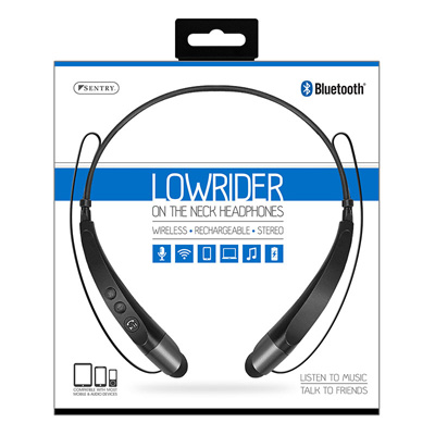 Bluetooth Lowrider Headset, on the neck design, magnetic locking ear-pads. Rechargeable USB included.