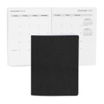 Sewn bound 56 pages monthly planner with boardroom faux leather cover. 28 sheets (56 pages) of 60# text white paper. Complies with Prop 65. 7″ W x 9″ L