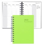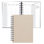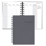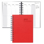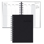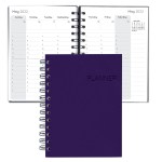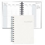 Sewn bound 56 pages monthly planner with boardroom faux leather cover . 28 sheets (56 pages) of 60# text white paper. Complies with Prop 65. 5″ W x 7″ L