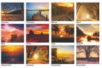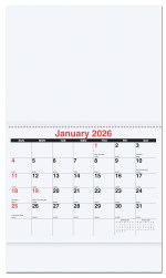 This wall calendar has 12 sheets of 80 Lb. gloss text and 80 Lb. gloss front and back covers. Calendar is printed in black and red with 13 full color photographs (1 per month plus front cover). Company logo and tag line is printed on bottom of back sheet. Includes 12 months (January to December, start at any month), American holidays, moon phases, Julian dates, and a hole at the top for hanging. Last sheet features 2 years at-a-glance. Measures 10 5/8″x 10 ¼” when closed. Coil bound with white wire. 10 5/8″ W x 18 1/4″ H