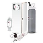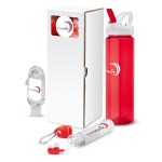 The Serenity 3-Piece Wellness Gift Set includes a water bottle, hand sanitizer, and earbud headphones packaged together in a matching gift box. The 25 oz. USA-Made water bottle has an integrated carry handle and flip-spout lid. The 1 oz. hand sanitizer has a 50 mm aluminum carabiner clip and the earbud headphones feature color accents, have a 46″ cord and a 50 mm aluminum carabiner clip. This is a thoughtful gift set for your friends and employees. Spread the gift of wellness with the Serenity gift set. Ground shipment only. Complies with Prop 65. 2 3/4″ W x 10 1/2″ H x 2 3/4″ D
