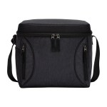 Grab the Seville soft cooler bag for your next camping or beach trip. Made from durable 600D and water resistant heathered grey materials, it also features foam insulation and heat sealed PEVA lining. Its easy to carry with its 1 1/2″ x 49″ adjustable shoulder strap and has the capacity to hold 16 cans in the main zippered compartment. You can store small items in the front pocket, accessible through both zippers, and in the side mesh pocket. Complies with Prop 65. 11″ W x 11″ H x 7″ D