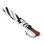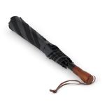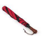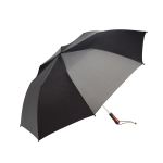 No matter the weather, Shed Rain has you covered. This large umbrella?s 58″ arc is big enough to protect you and a friend from the elements. The ergonomic wood handle feels comfortable in your hand and features a leather wrist strap for easy carrying. With an easy push of a button, you can quickly pop open the umbrella when a rain shower sneaks up on you. Canopy is made of PFAS-free material. Shed Rain covers this product with a lifetime warranty (excluding imprint). Complies with Prop 65. 2.5″ Diameter x 21.5″ L