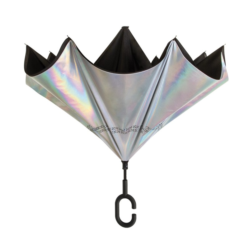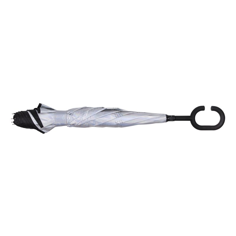 No matter the weather, Shed Rain™ has you covered. This stylish manual-open umbrella has a rubber-coated C-shaped handle that keeps your hands free as you move about. When closed, it creates a cone to keep you dry when getting in and out of your vehicle or going through a doorway. It features a 48″ arc, a steel shaft, fiberglass ribs, and an iridescent accent under the canopy. Lifetime Warranty.