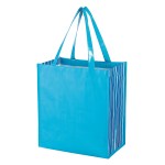 Made Of 80 Gram Laminated Non-Woven, Coated Water-Resistant Polypropylene. Great For Grocery Stores, Markets, Book Stores, Gift Bags, Etc. 8″ Striped Side Gusset. Reusable. Recyclable. 21″ Handles. Spot Clean/Air Dry. Complies with Prop 65. 8″ D x 13″ W x 15″ H