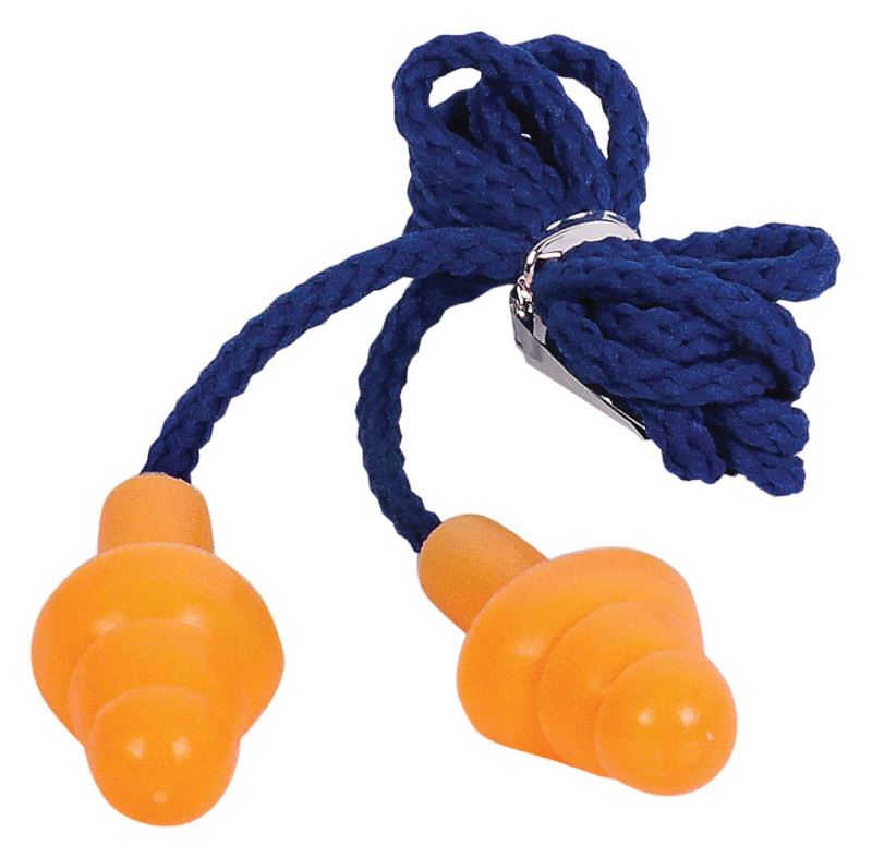 They’re made of silicone with a blue nylon cord and come in a clear clip case for easy transportation and storage. The cord attachments keep the earplugs connected and these are perfect for distributing equal pressure to reduce sound volume. Complies with ANSI, Prop 65. 1 1/4″ W x 1 3/4″ H