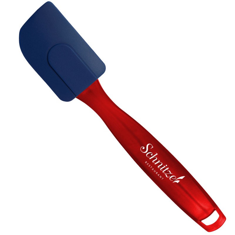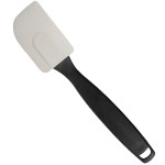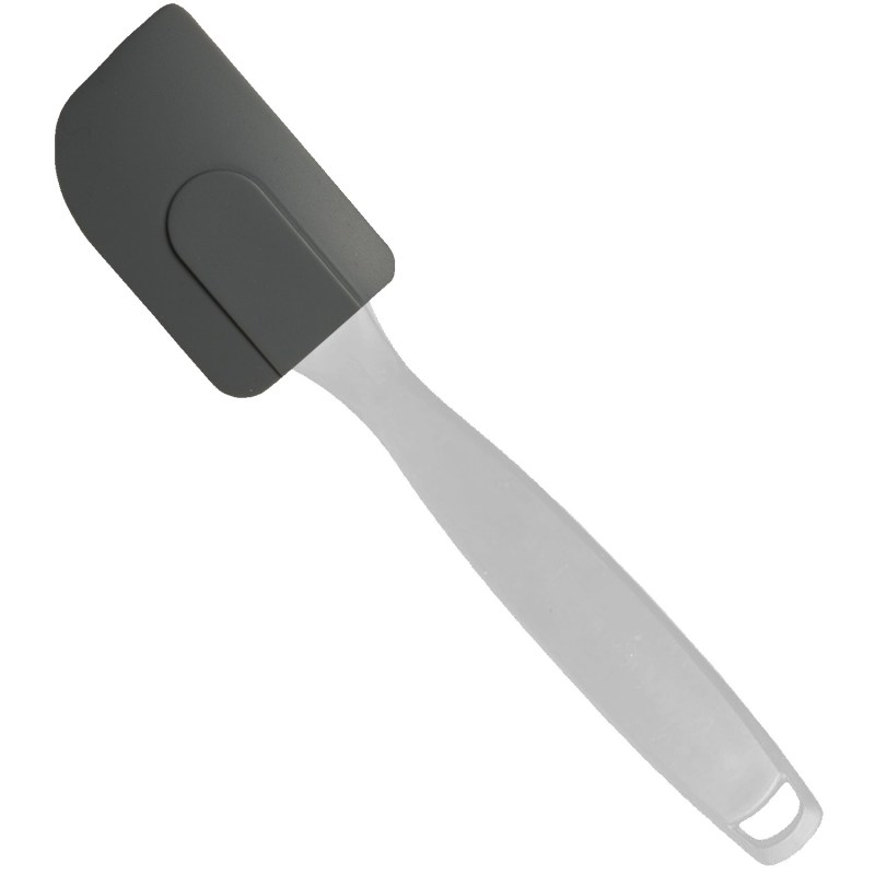 A necessity for every kitchen, the spatula is great for spreading, stirring or scraping flat and curved surfaces. The silicone spatula component can handle temperatures above 450 E Top rack dishwasher safe. Spatula colors are blue, charcoal gray, white. Complies with Prop 65. 9 1/8″ W x 2″ H x 3/8″ D
