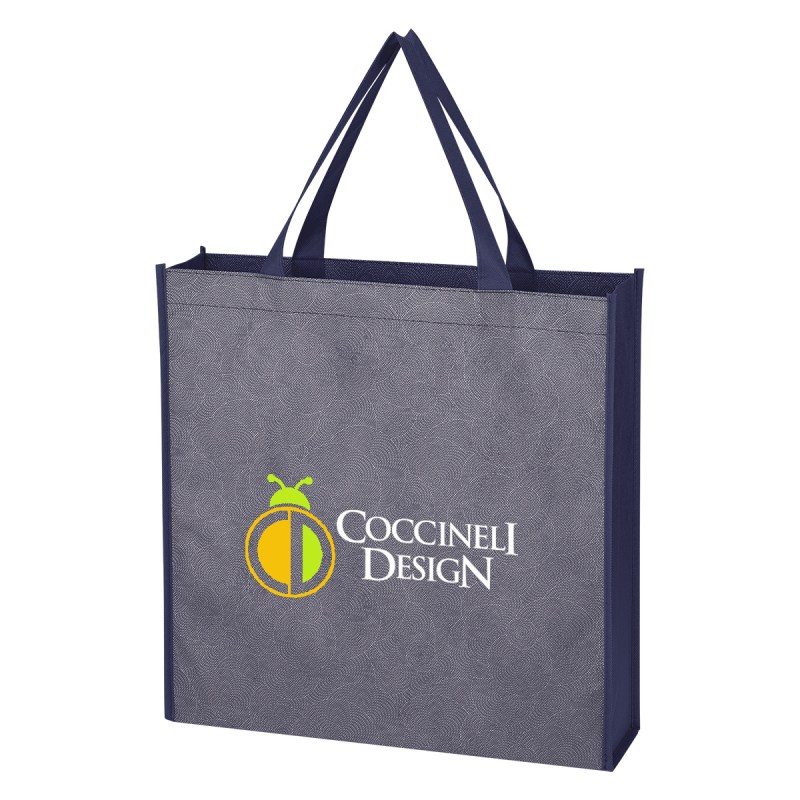 Made Of 80 Gram Laminated Non-Woven, Coated Water-Resistant Polypropylene 3 ½” Gusset 16″ Matching Handles Spot Clean/Air Dry. Complies with Prop 65. 3.5″ D x 14″ W x 14″ H