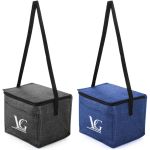 Our Silver Tone Non-Woven Cooler Lunch Bag is the Trendiest Lunch Bag you Will Ever Find! Unique silver tone fabric design. Foil laminated foam polyethylene foam insulation keeps your stored contents warmer or colder for longer. Front open pocket for handy storage of utensils, napkins and more. Can hold up to 9 cans of your favorite beverage. Recommended weight tolerance of 14 lbs. Add your custom business artwork or logo! Complies with Prop 65. 8″ H x 9.5″ W x 7.5″ D