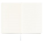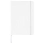 The SimpliColor Hard Cover Notebook – A5 is a stylish journal with a full-color imprint on the front cover. Inside, it includes 80 sheets (160 pages) of 70 gsm lined paper sourced via responsible forestry, perfect for note-taking. The notebook is secured with a white elastic band closure and includes a white satin bookmark for easy reference. This hard cover journal is perfect bound, offering a sleek, polished look for any setting. Complies with Prop 65. 8.27″ H x 5.51″ W x 0.47″ D