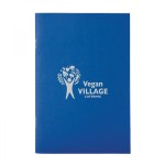 ECO notebook with stapled binding, 13 pt soft cover and 48 ivory lined pages Notebook pages and covers are colored with organic, soy based inks and are made in Canada with 100% recycled materials. 6″ L x 9″ W