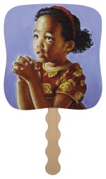 Stay cool and spread your message with this beautifully designed hand-held paper fan featuring an uplifting image on the front and your imprint on the back. Perfect for so many occasions, it combines practicality with a meaningful message, adding elegance to your event while keeping attendees feeling refreshed. The FSC® label means that the materials used for this product come from well-managed FSC®-certified forests and other controlled sources. 7.5″ W x 7.75″ H