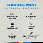 The Skullcandy Barrell Mini is the ultimate portable Bluetooth speaker. With built-in custom dual passive radiators, it will provide maximum bass for your audience. If the sound doesn’t get their attention, the LED Lights will mesmerize the crowd with a dazzling, dynamic light show. With up to 12 hours of playback time, you’ll enjoy the audio from sunrise to sunset. With an IPX7 waterproof rating, the speaker is perfect for camping, traveling, and other outdoor adventures. The speaker includes t. 5.80″ D x 13.80″ W x 5.90″ H