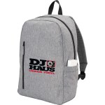 The Skye Computer backpack offers stylish design elements with a budget-friendly price. Featuring a zippered main compartment with 15” laptop sleeve and a front pocket with an on-trend vertical zipper. This bag can be easily carried using the sturdy top handle or adjustable shoulder straps. This backpack is also crafted from recycled 600d polyester. 5.00″ D x 11.25″ W x 16.75″ H