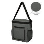 Made Of Combo: 1200D Water-Resistant, Cationic Dyed Polyester And 600D PVC. PEVA Lining. Adjustable Shoulder Strap. 2 Side Mesh Pockets. Front Zippered Pocket. Complies with Prop 65. 5.25″ D x 9″ W x 9.5″ H