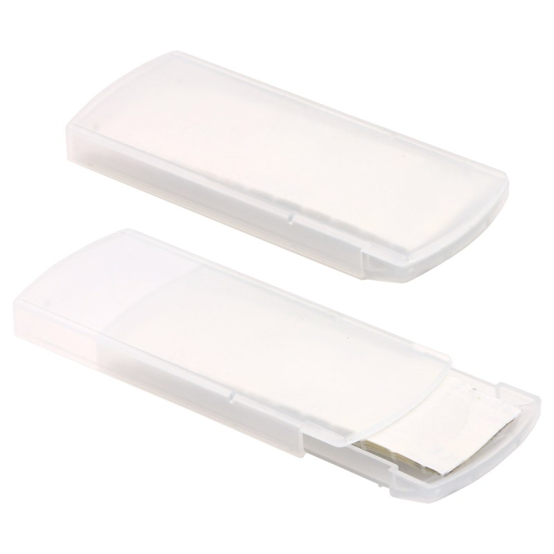 Thin size perfect for pocket storage, Holds multiple bandages, Includes five starter bandages. Complies with Prop 65. 4″ L x 0.375″ W x 1.625″ H
