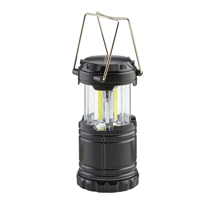 Pull up to activate powerful COB light. Turns off when collapsed in closed position. Two folding metal handles for easy carrying or hanging. 3 AAA batteries included. Great for the outdoors, working on vehicles, closets, etc. Complies with Prop 65. 7″ H x 2 5/8″ D
