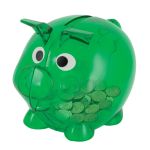 Lil Billie – Small Piggy Bank. Small piggy bank with durable plastic body. Accepts all standard US coins. Twist lock plug. 4 W x 2 3/4 H x 2 3/4 D. 4.0″ W x 2.75″ H x 2.75″ D