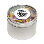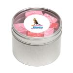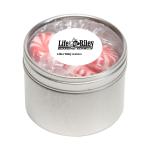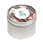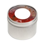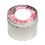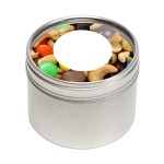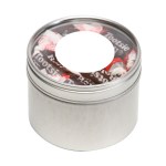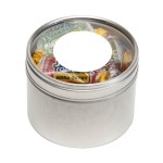Small Round Window Tin filled with your choice of delicious candy and snacks. During warmer weather perishable items can require special packaging and shorter shipping transit times. Please contact Customer Service for details and charges. 2.125″ W x 1.875″ H x 2.125″ D